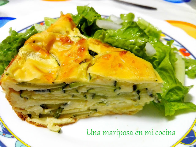 Vi este pastel en el blog A taquitos y me quede prendada de las fotos, tenia una pinta deliciosa asi que enseguida tome nota y aqui esta,eso si, yo doble las cantidades porque me parecio poca masa y la verdad es que salio un pastel bien hermoso , es sencillisimo de hacer , con pocos ingredientes, y muy economico, yo utilice calabacines de mi huerta y los huevos de mis gallinitas, asi que mas barato no pudo ser verdad?