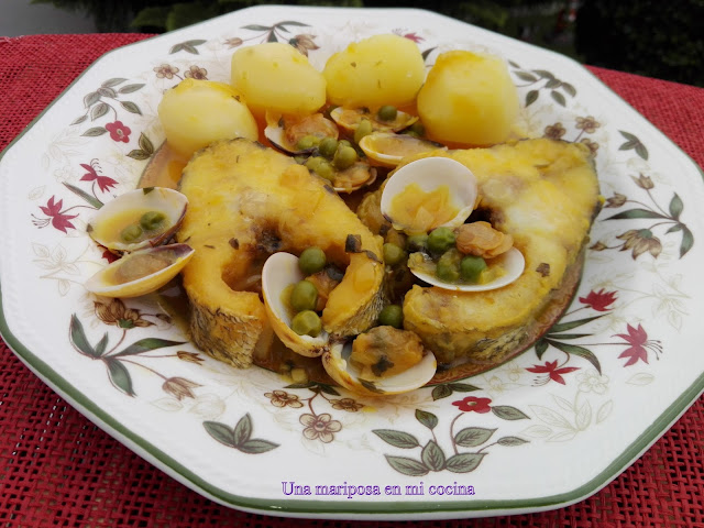 Buen Lunes a tod@s,hoy terminamos Octubre con un rico guiso de pescado, la corvina es un pescado que me encanta aunque dificil de conseguir donde yo vivo, pero siempre que voy a Portugal y la encuentro me hago con una o dos , es un pescado ,muy sabroso, en casa nos gusta mucho , esta la prepare de forma muy sencilla pero quedo riquisima y con una salsita para perderse mojando pan, haber que os parece.
