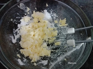 Batimos la mantequilla con el azucar glas hasta que este esponjoso