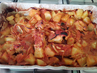 Hola amig@s, hoy os traigo un pescado que compre el otro dia en Portugal, pregunte que pescado era y me dijeron se llamaba red fish osea pescado rojo o peixe vermello como le dicen ellos, ese era su nombre, tambien pregunte que tal era ,si salia rico y me dijeron que si, que era muy rico de cualquier forma pero mucho mejor si se hacia al horno,vamos que todo eran alabanzas para el red fish, asi que no me lo pense mas y lo compre, y claro esta tambien lo hice al horno, busque en internet recetas del dichoso pescado y vi varias en algunas paginas portuguesas , al final me decidi por esta, total, que el pescado no me gusto tanto como bueno decian que era, no es que estuviera malo, pero lo encontre demasiado seco y recio, lo que si estaba muy rica era la salsa y las patatas, y creo que cualquier otro pescado como la merluza,el abadejo,el bacalao fresco etc, deben de quedar muy buenos asi preparados, asi que os dejo la receta por si os apetece preparalo de esta manera, eso si, el red fish no os lo recomiendo, jajjajaja.
