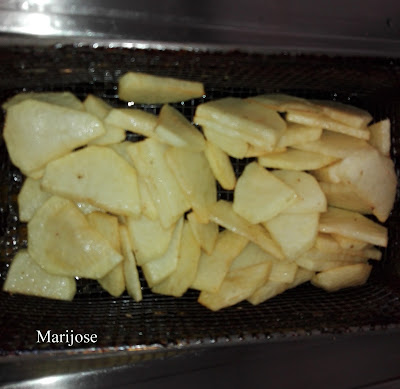 Pelamos y cortamos en rodajas finas las patatas y sofreimos tambien un poco pero por separado