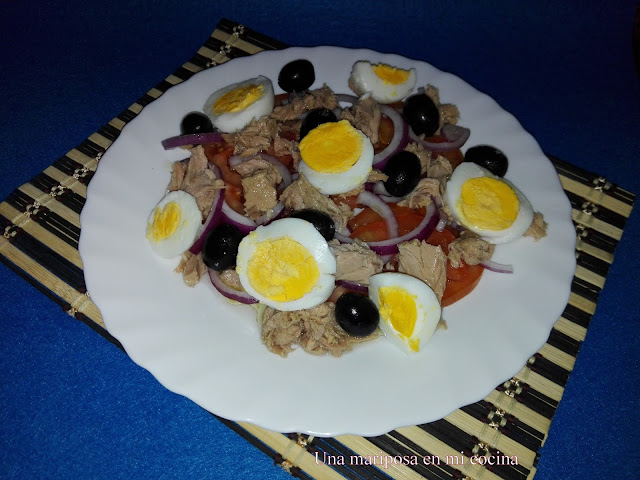 Aunque por estos lares aun no hace mucho calor, bueno estos ultimos dias ha calentado bastante y vamos ya de cara al buen tiempo y nos apetecen comidas mas ligeras y fresquitas como esta ensalada que os traigo hoy, aunque si os soy sincera a mi las ensaladas me apetecen siempre y en casa las comemos durante todo el año, esta la prepare el otro dia para cenar.