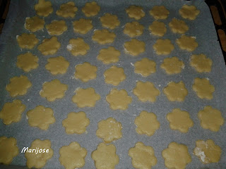 Formamos una bola , extendemos sobre la encimera con el rodillo y con un cortapastas cortamos las galletas