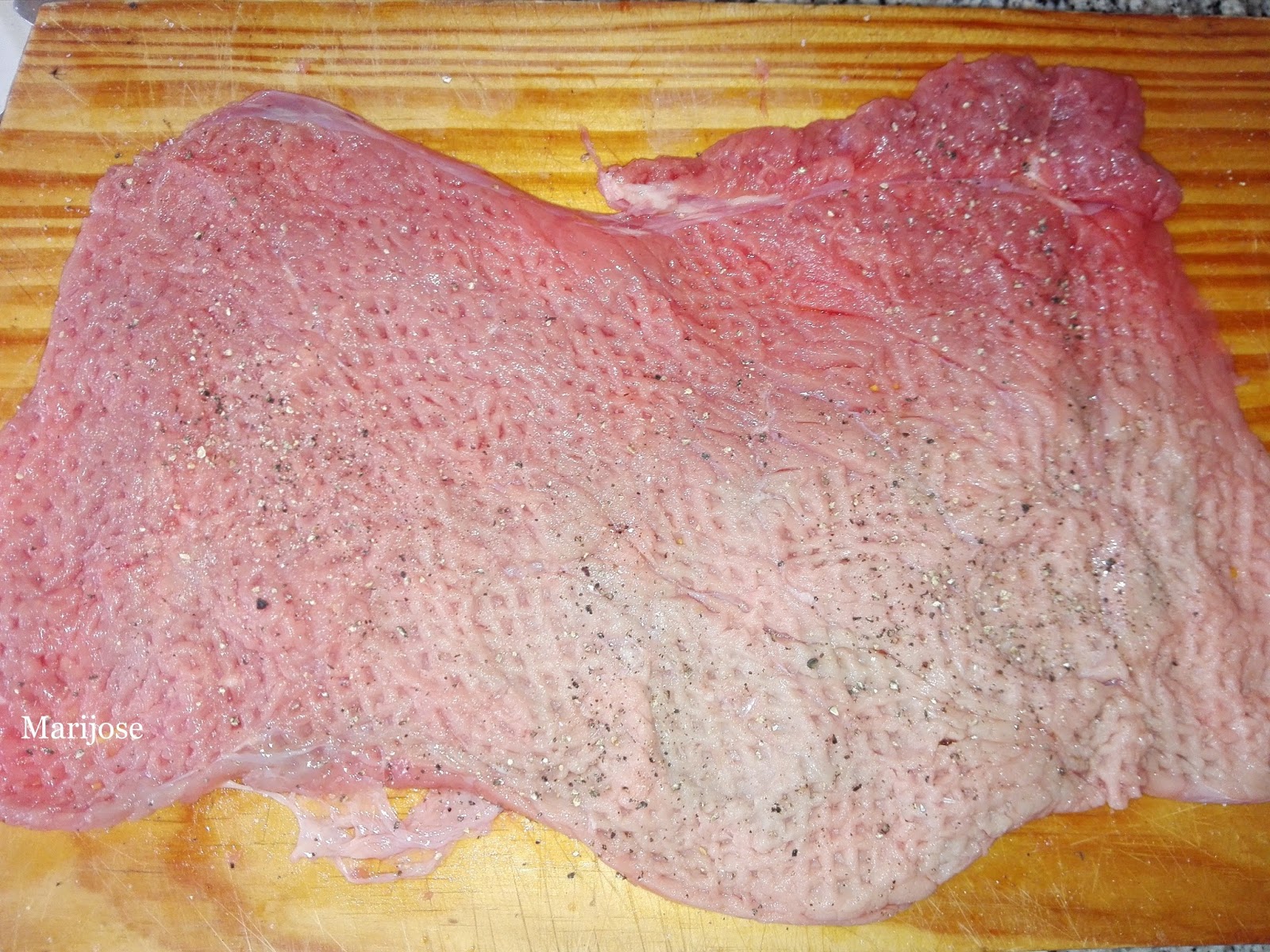 Aplastamos los filetes con el mazo y salpimentamos por las dos caras