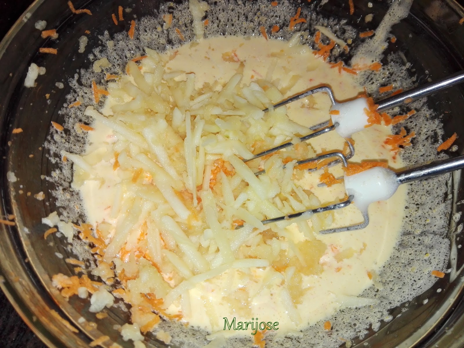 Añadimos la manzana y la zanahoria ralladas y mezclamos