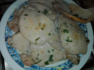 Machacamos en el mortero los ajos con un pelin de sal , pimienta y el perejil picado , añadimos un poquitin de aceite y adobamos los filetes una hora antes de cocinarlo.