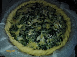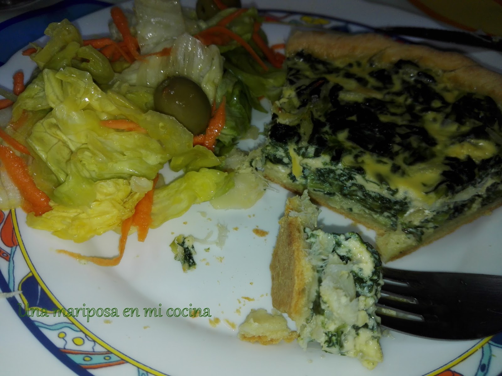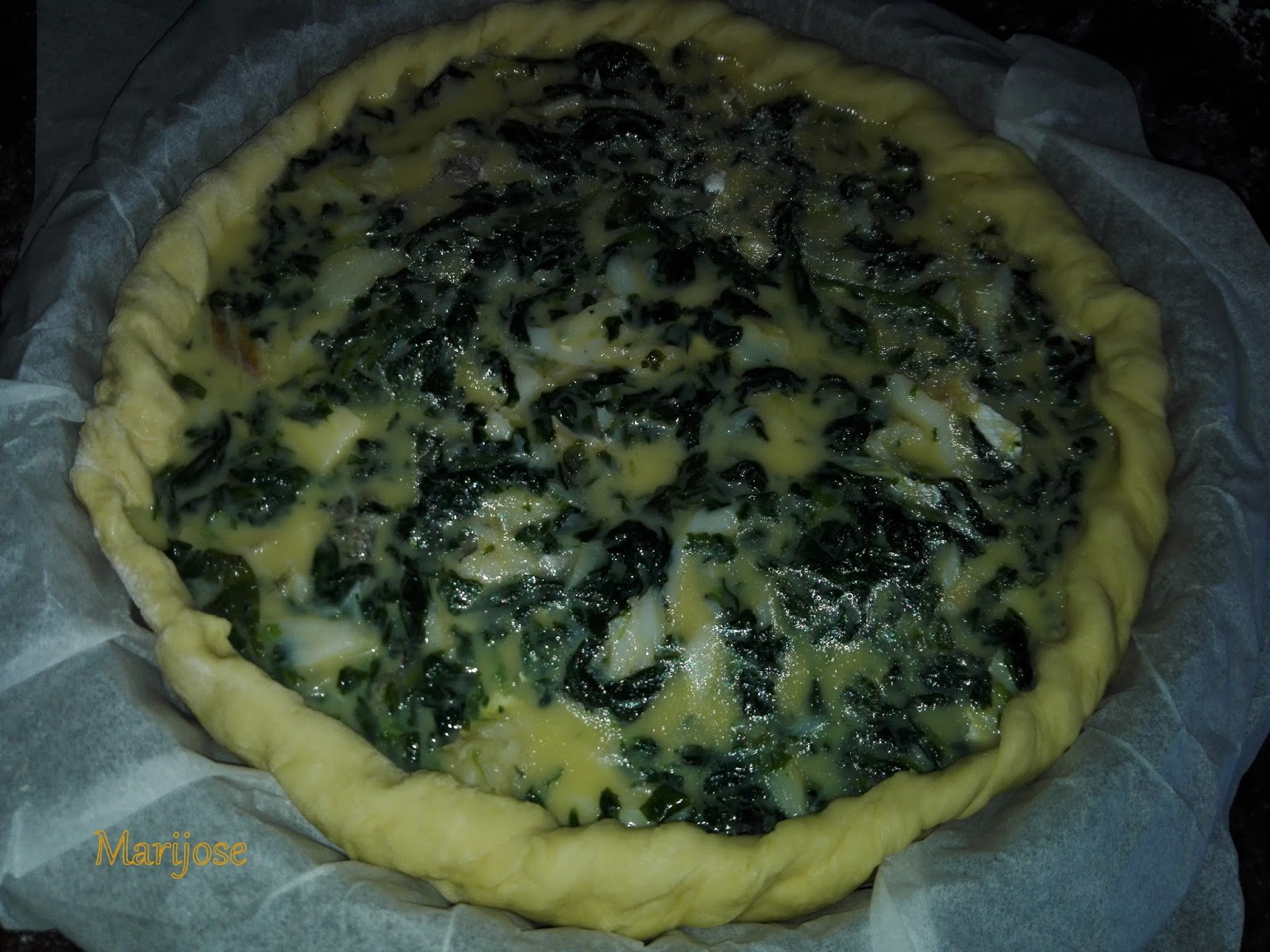 Esto fue lo que se me ocurrio para aprovechar un trozo de bacalao que me habia sobrado de la comida  del dia anterior y que junto a media bolsa de espinacas y un trozo de queso que andaban rondando por la nevera se convirtieron en nuestra cena de anoche acompañado de una ensalada y que estaba para chuparse los dedos, claro que a mi este tipo de pasteles me gustan con cualquier cosa, pero si encima es con bacalao que me encanta pues mucho mejor, os invito a probarlo.