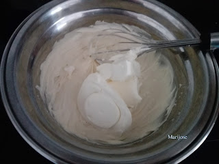 El unico inconveniente es su tamaño, no queda un pastel muy grande, pero podeis aumentar las  cantidades ,aunque debeis recordar que por cada huevo que añadais de mas debeis poner 40 grs mas de queso y 40 de chocolate,y unos 5 minutos aproximadamente mas de horno, yo use 4 huevos, 160 grs de chocolate y 160 grs de queso, sencillisimo verdad?, pues ala a la cocina¡¡¡¡