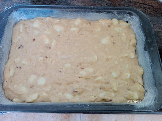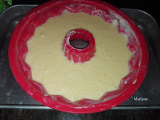 Y vertemos en un molde untado con mantequilla y espolvoreado con harina repartiendola de forma uniforme