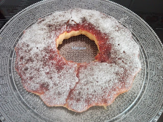 Sacamos, dejamos enfriar completamente , desmoldamos y espolvoreamos con azucar glas