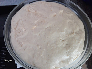 tapamos con papel film y dejamos levar en lugar calido y sin corrientes de aire hasta que doble su volumen (a mi me tardo una hora pero depende de lo caldeado de la estancia)