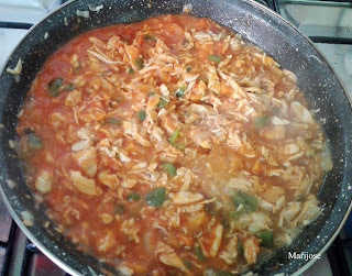 Añadimos unas 4-5 cucharadas al sofrito de pollo y mezclamos