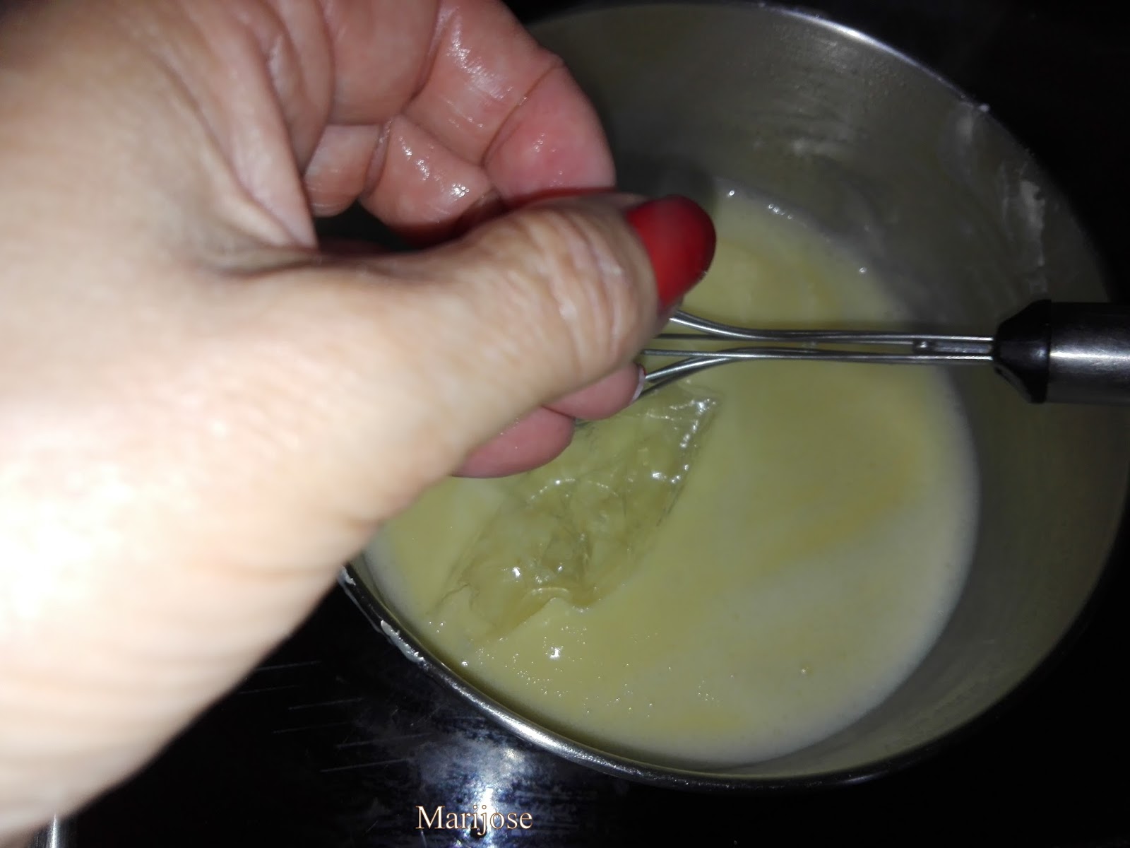 Entonces retiramos del fuego y añadimos la nata caliente poco a poco y sin dejar de remover