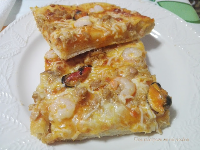 Empezamos la semana con una pizza , esta tiene sabor  a mar, una pizza marinera muy jugosa y rica que espero os guste.