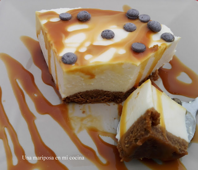 Me encantan las tartas de queso, tanto al horno como frias estan riquisimas, esta que os traigo hoy no necesita horno, sencillisima de hacer y mas facil aun de comer, ya que al regarla con salsa de toffe  la convierte en una delicia, nos a encantado y espero a vosotr@s tambien, probarla, os va a gustar.