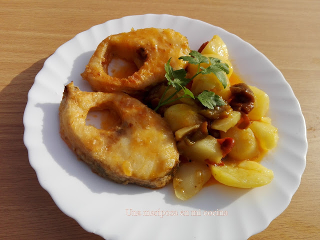 Una receta sencilla y sabrosa que se puede hacer con cualquier pescado blanco, merluza , rape, bacalao fresco, etc, yo al ir hacer la compra vi este abadejo tan fresco que no pude resistirme a compralo y  aqui esta, espero os guste tanto como a nosotros.