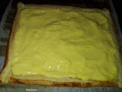 Mientras cuece el hojaldre preparamos la crema pastelera(ver receta aqui) y dejamos enfriar tambien completamente