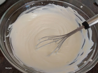 Batimos los yogures con el azucar y la esencia de limon(esto es opcional,podeis poner la esencia que mas os guste o ninguna)
